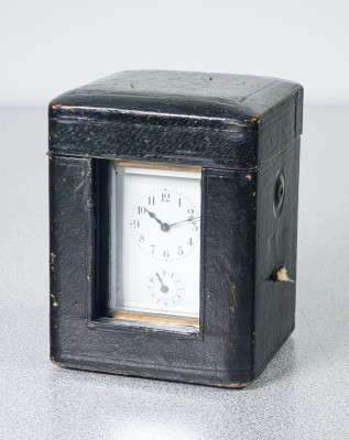 Officier, pendulette con sveglia e custodia da viaggio originale