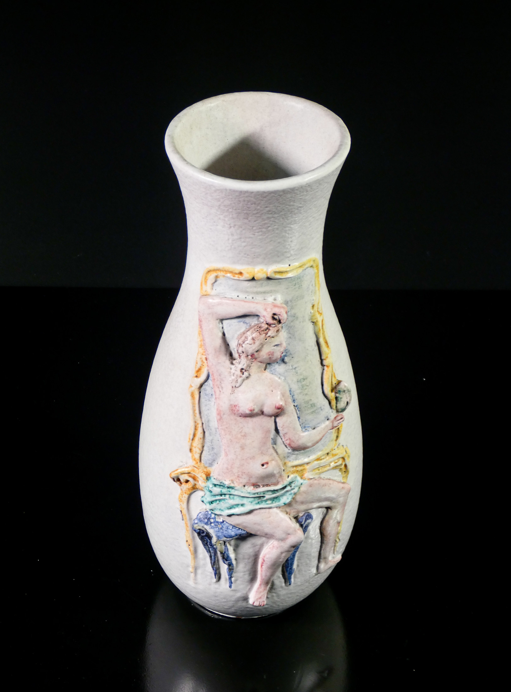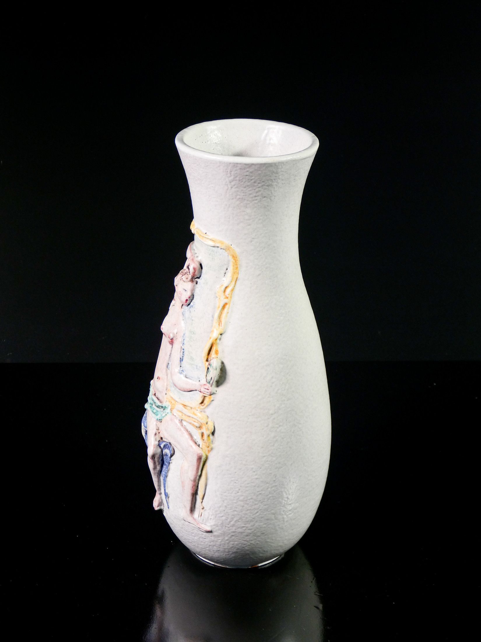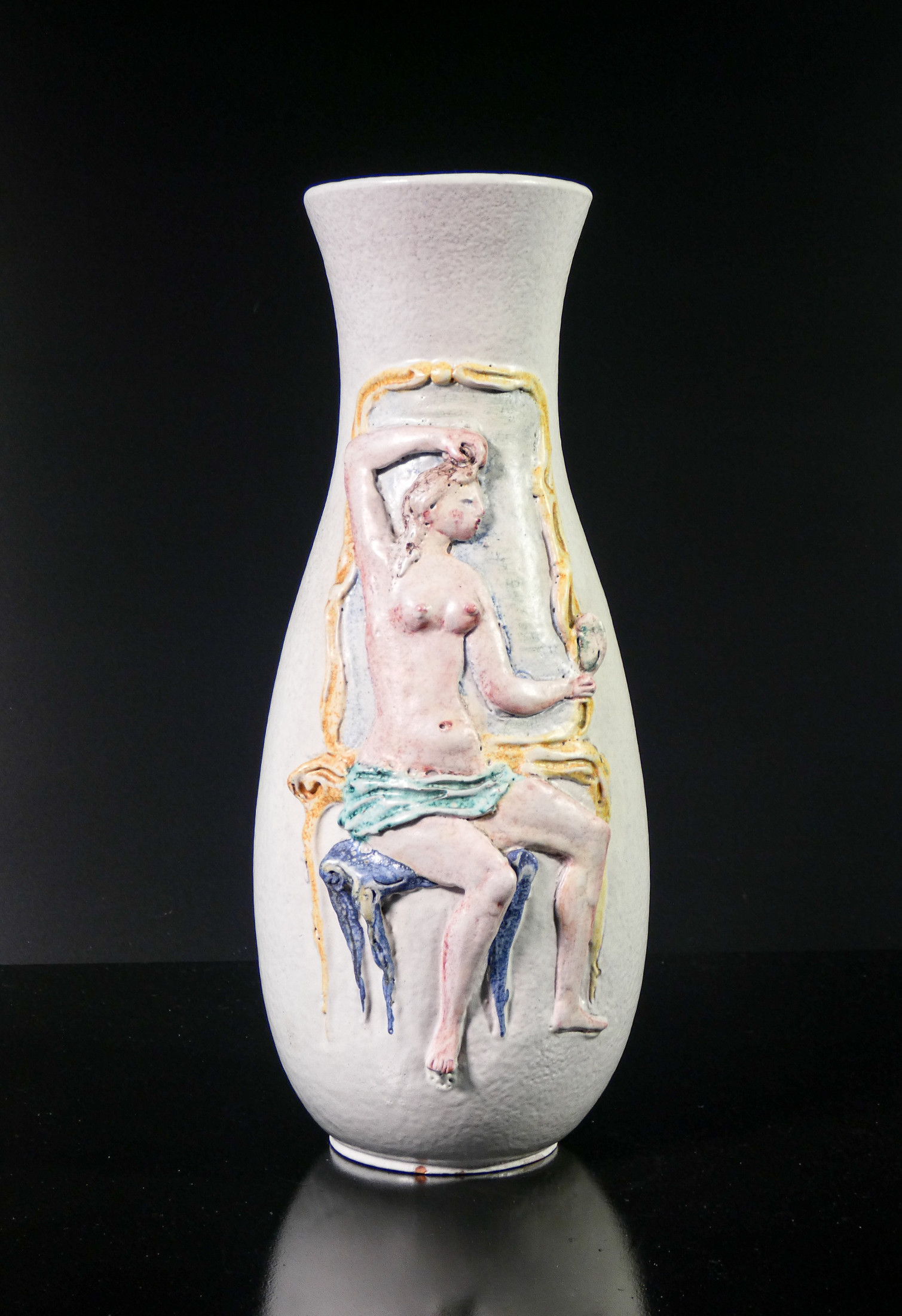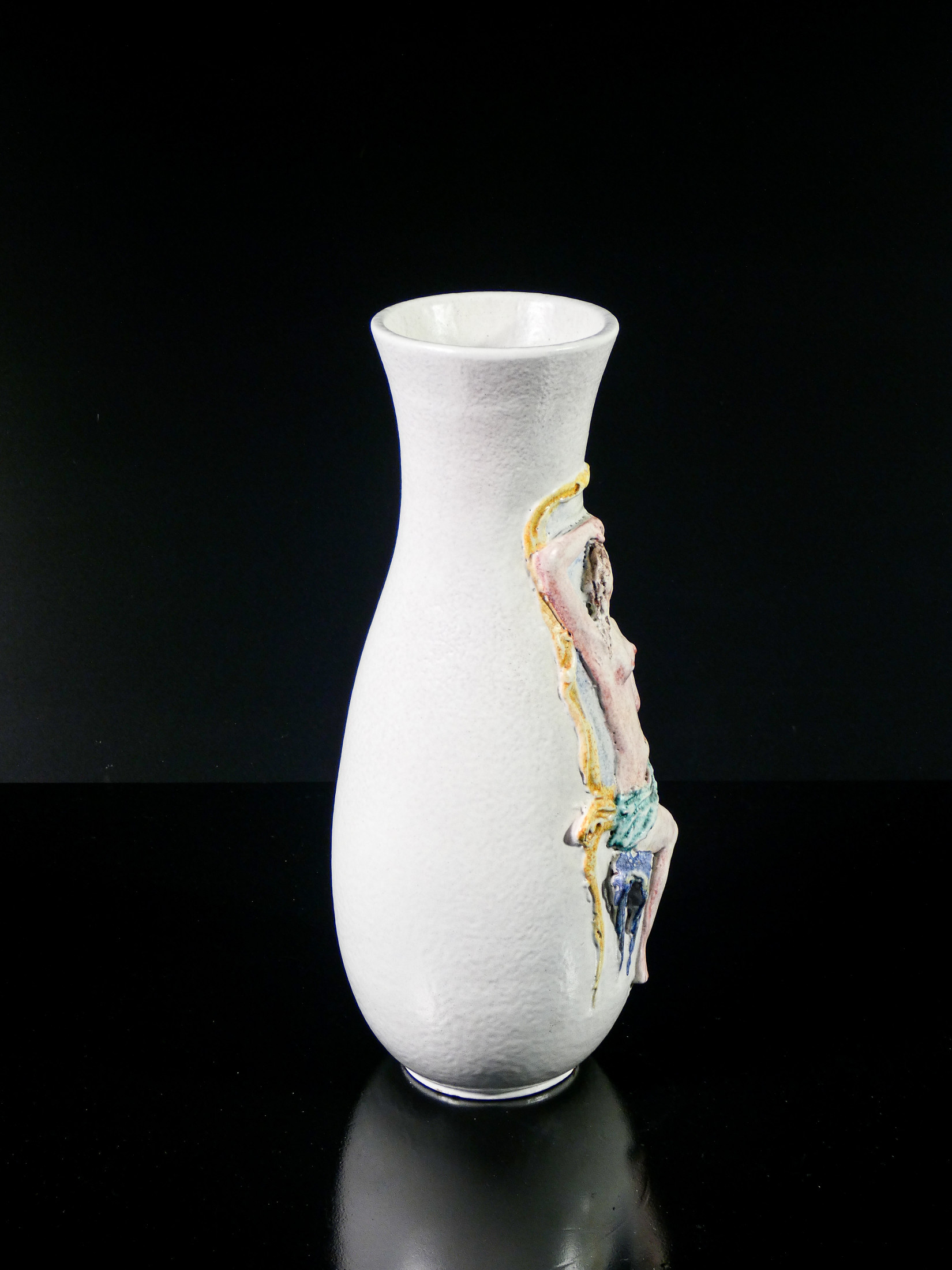 Marcello Fantoni, scultore, medaglista e ceramista, nasce a Firenze nel 1915 e studia nella sua città all'Istituto d'Arte di Porta Romana allievo, tra gli altri, di Libero Andreotti, Bruno Innocenti, Gianni Vagnetti e Carlo Guerrini. Dopo gli anni della formazione lavora, a partire dal 1934, presso vari laboratori e manifatture ceramiche tra cui la "Cantagalli" di Firenze, assume l'incarico di direttore artistico di una piccola manifattura ceramica di Perugia e nel 1936 apre un laboratorio per conto proprio denominato "Fantoni Ceramiche", in via Luigi Lanzi 2 a Firenze, dove produce sia ceramica d'arredamento in serie che scultura e ceramica artistica. Nel 1937 presenta alcune ceramiche della sua produzione alla VII Mostra Nazionale dell'Artigianato di Firenze imponendosi all'attenzione del pubblico per le sue opere di gusto rustico decorate con paesaggi africani e marini animati da figure stilizzate dipinte a smalto. Successivamente apre una collaborazione con il "C.I.M.A." e tra la fine degli anni Trenta e i primi anni Quaranta realizza dei modelli per la manifattura perugina "La Salamandra". Gli anni della guerra lo vedono partigiano in montagna e nei primi anni del dopo guerra trova impiego presso la manifattura "Maioliche Deruta". Negli anni Cinquanta ricomincia la sua attività in proprio nei locali al numero civico 45 di via Lanzi, a Firenze dove inizia a dedicarsi alla realizzazione di grandi sculture. Grande sperimentatore della materia è interprete delle diverse correnti artistiche dal Novecentismo al Primitivismo, dal Cubismo all'Astrattismo fino all'Informale e al Minimalismo degli ultimi lavori. A partire dal 1970, nel suo studio, fonda la Scuola Internazionale d'Arte Ceramica e si dedica all'insegnamento e alla sperimentazione della cottura ad alta temperatura. Nel 2000 Firenze gli dedica una grande mostra antologica dal titolo "Ceramica come Arte, Marcello Fantoni ceramista e scultore" allestita al Salone delle Regie Poste e nel 2005 il Museo Archeologico di Fiesole gli dedica un'importante personale dal titolo "Marcello Fantoni, una bella forma con un bel colore". Marcello Fantoni muore a Firenze nel 2011. Fonte